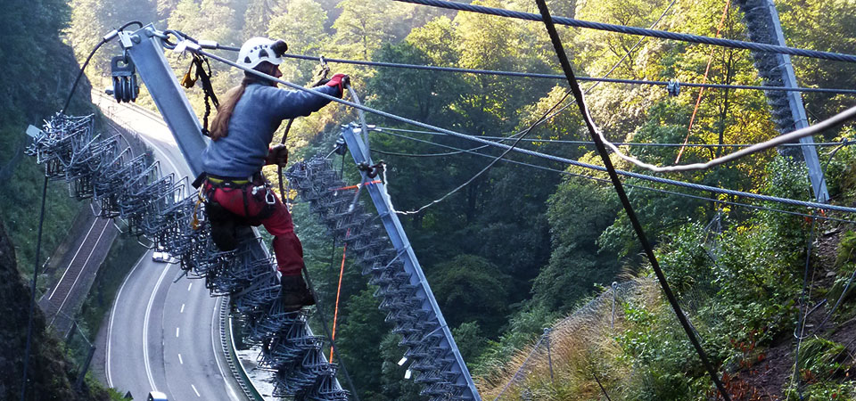 Fels-, Hang- und Böschungssicherungen, Steinschlagschutzzäune, Spritzbeton- und Ankerarbeiten, Drehrohrofenausbrüche.