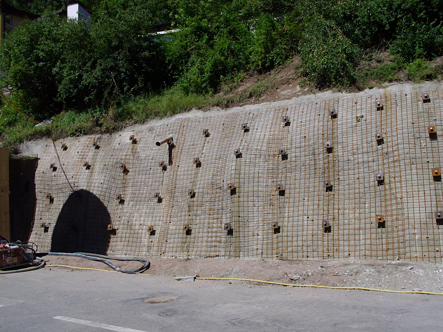 Mauersicherung durch Spritzbeton und Ankertechnik