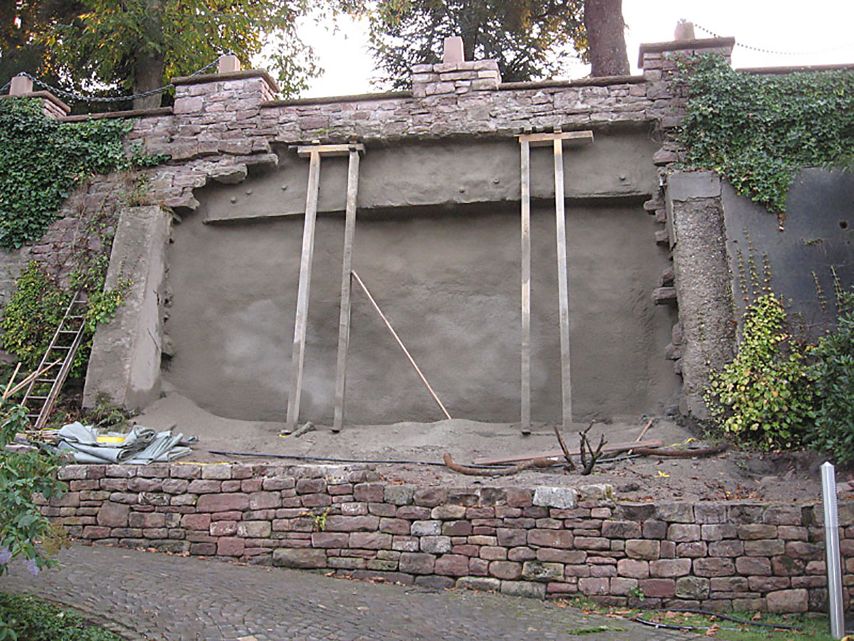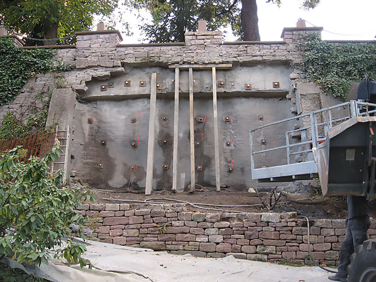 Mauersicherung durch Spritzbeton und Ankertechnik