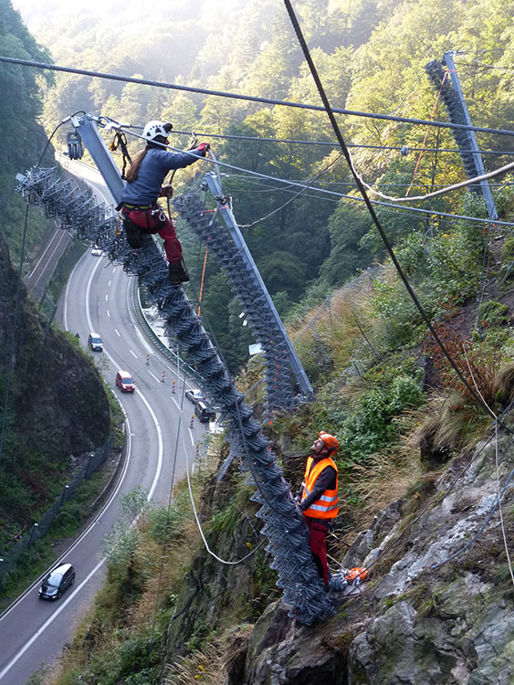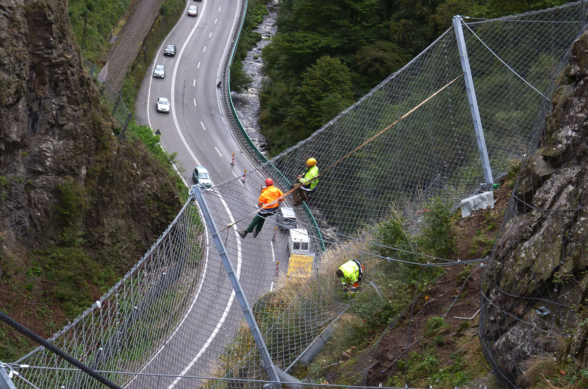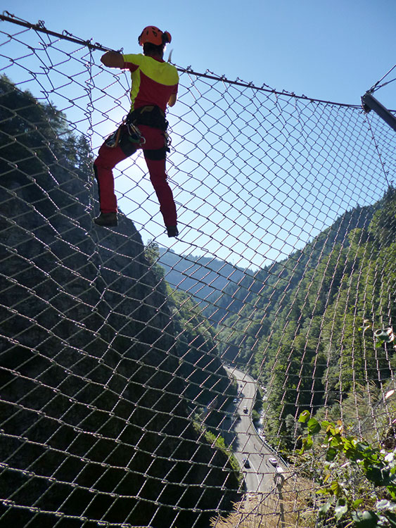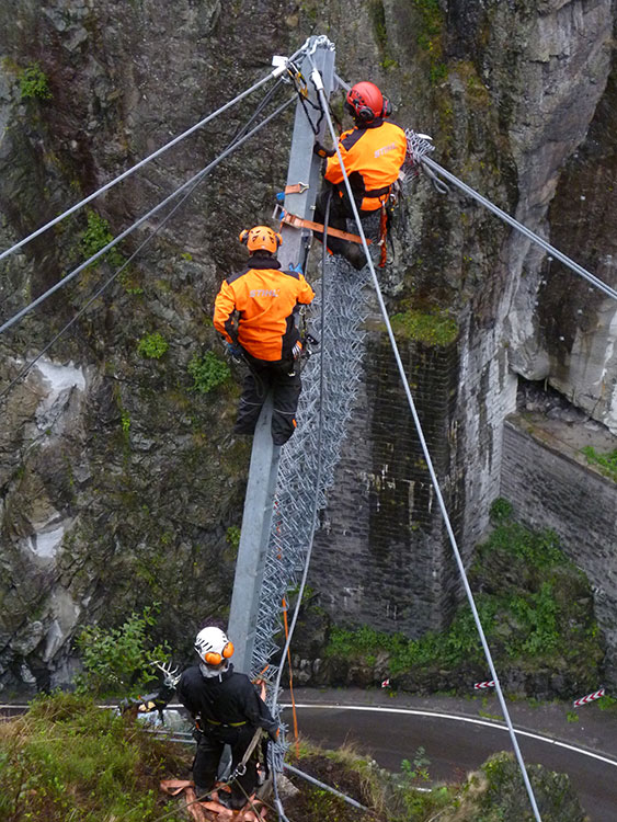 - Erstellen von Steinschlagschutzsystemen (Fangzäune und Schutznetze)
